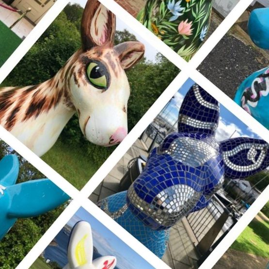 Sixty-four painted wallaby sculptures appear across the island as part of a community art project.